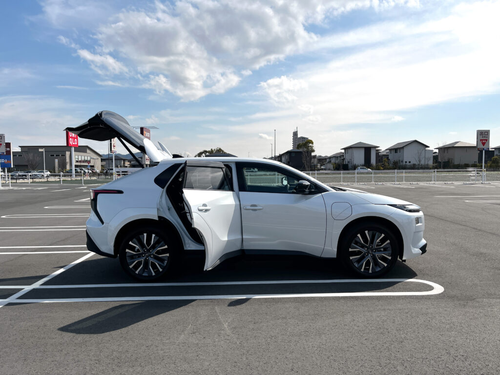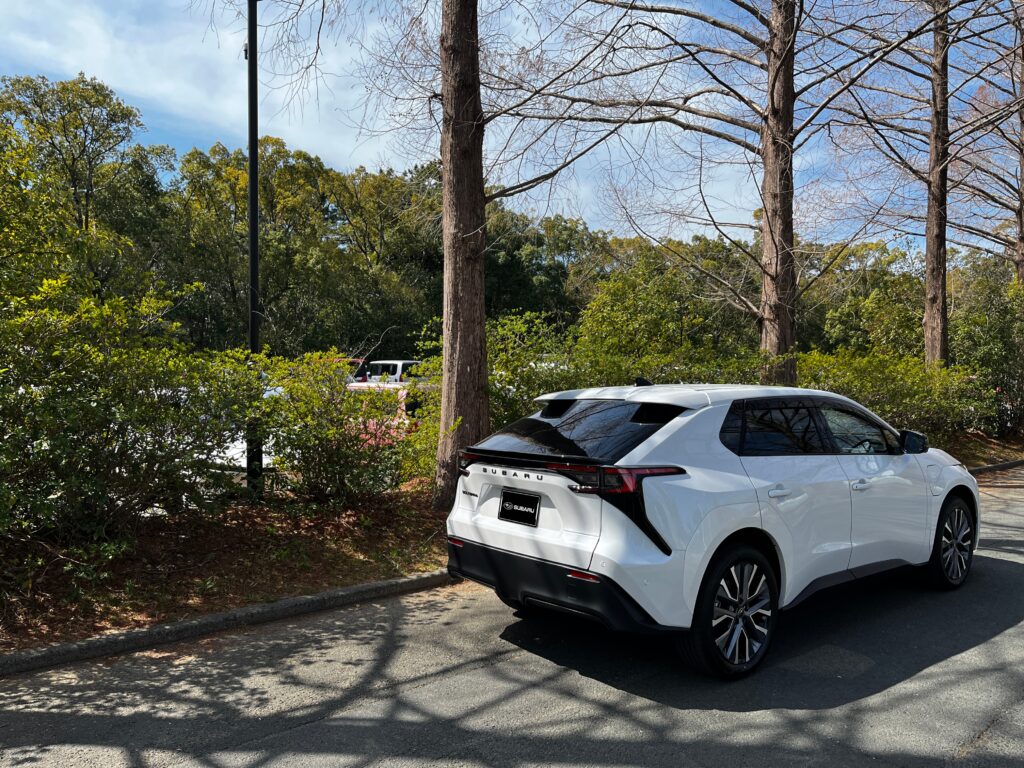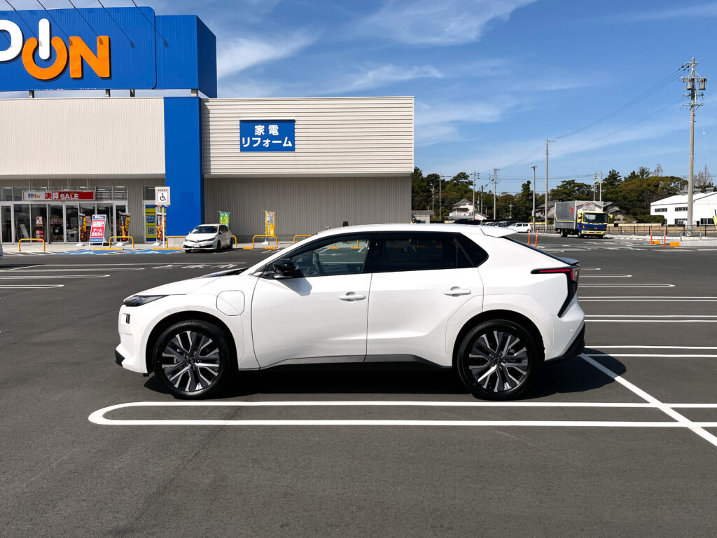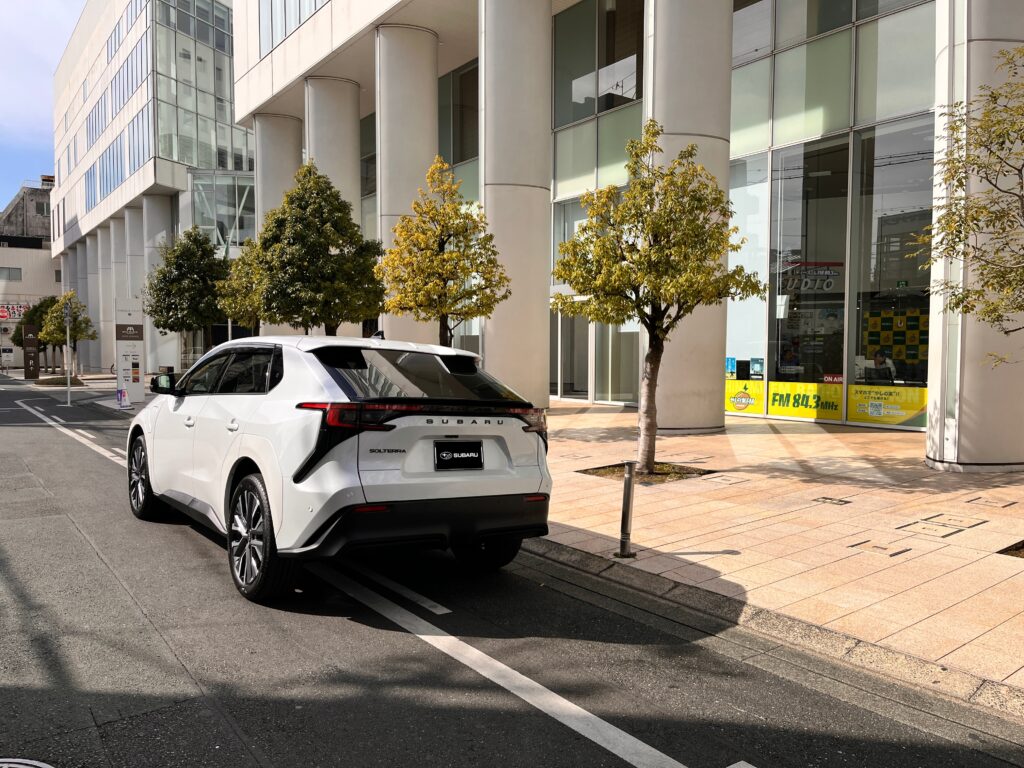 一目で次世代のEVと分かるシャープで未来的な顔立ちのソルテラですが、いざ身近な施設の駐車場に停めてみると、驚くほど普段の街並みに溶け込みます。